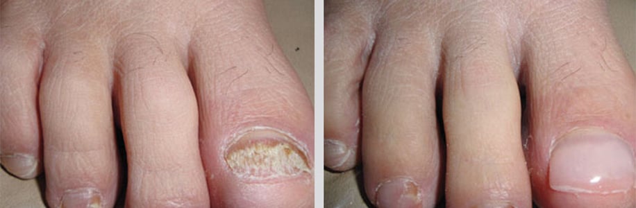 Unlike rigid acrylic nails, KeryFlex restored nails can bend with the natural movement of toes and feet
